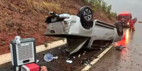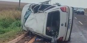 Caminhonete capota várias vezes na BR-359 entre Alcinópolis e Coxim e deixa três pessoas feridas