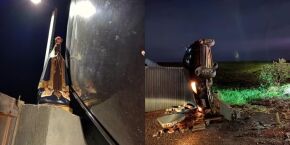 Carro capota, para aos pés da imagem de Nossa Senhora e vereadora escapa ilesa