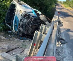 Segundo as informações apuradas no local, o caminhão bateu na quina da ponte, rompeu o guard rail e tombou para a direita antes de cair. A cabine ficou severamente danificada, com grande quantidade de sangue visível no interior do veículo, o que indica a gravidade do impacto.