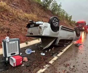 Caminhonete capota várias vezes na BR-359 entre Alcinópolis e Coxim e deixa três pessoas feridas