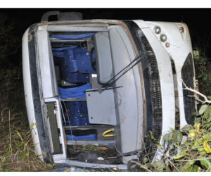 Ônibus com alunos de escolinha capota e deixa dois feridos na BR-060