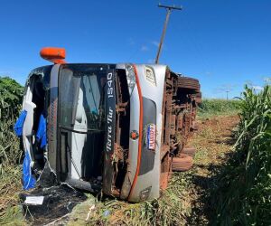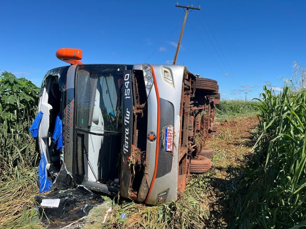Ônibus tomba, duas pessoas morrem e 38 passageiros ficam feridos na BR-163 em Sonora