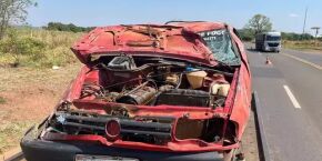 Motorista perde controle em curva e fica em estado grave ao capotar carro na BR-163 entre Rio Verde de Mato Grosso e São Gabriel do Oeste