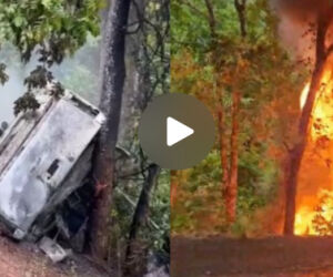 Viatura dos bombeiros pega fogo ao capotar em rodovia