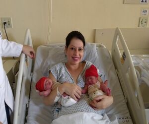 A mulher teve os bebês de parto natural. Eles nasceram na 38ª semana de gestação e passam bem, assim como a mãe, conforme o hospital. Samuel veio ao mundo com 2,810 quilos e 47 centímetros. Sara, que nasceu 22 minutos depois, registrou 2,755 quilos e 48 centímetros.