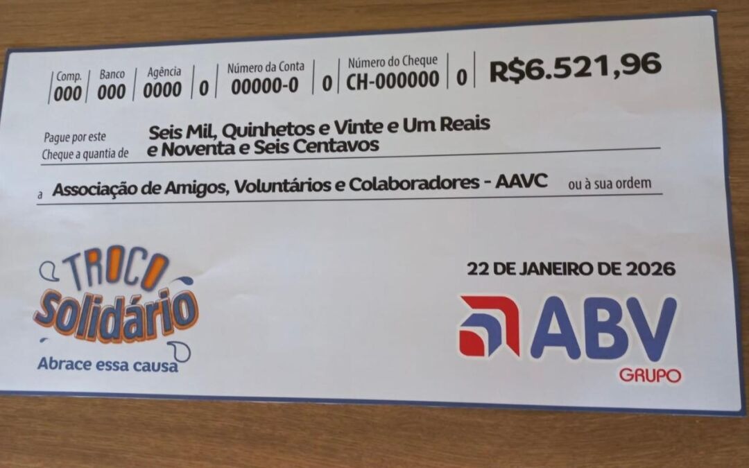O valor arrecadado, no total de R$ 6.521,96 é resultado da contribuição voluntária de clientes do supermercado, que optaram por doar o troco de suas compras para fortalecer causas sociais. O montante será investido em melhorias na sede da AAVC, beneficiando diretamente os trabalhos desenvolvidos pela entidade.