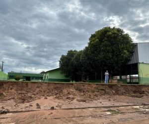 A queda de parte do muro da Escola Estadual Sílvio Ferreira, em Coxim, registrada na noite de segunda-feira (2), trouxe preocupação para a comunidade escolar e moradores da região. Um dia após o ocorrido, na manhã desta terça-feira (3), a reportagem esteve no local e flagrou a diretora da unidade realizando vistoria para avaliar a situação e os danos causados pela queda da estrutura.