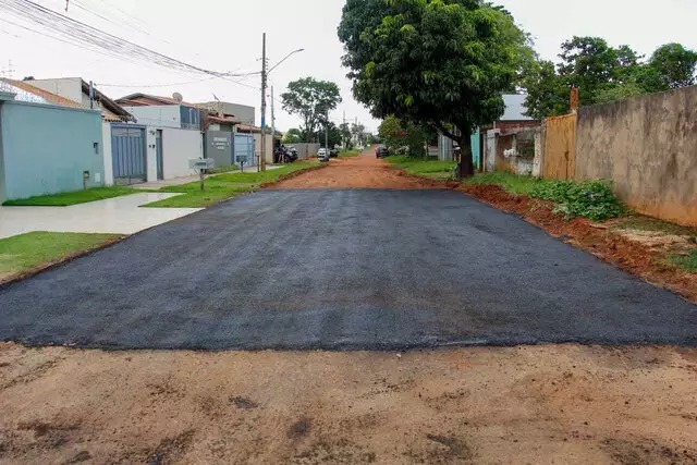 Após anos de espera por pavimentação asfáltica, morador da Rua dos Estudantes, no bairro Jardim Itatiaia, decidiu asfaltar a frente da própria casa. Segundo vizinhos, ele também ofereceu o serviço aos demais moradores da via, que poderiam arcar com os custos da obra através de vaquinha, mas ninguém participou.
