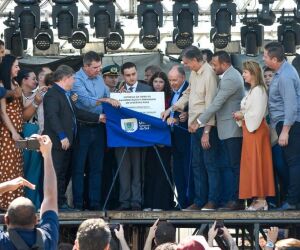 O cronograma de aniversário também marcou o início de novos projetos, com a assinatura das ordens de serviço para a ampliação da Feira do Produtor — viabilizada por emenda do deputado Beto Pereira — e para a construção de uma unidade de Educação Infantil na Vila Bela.