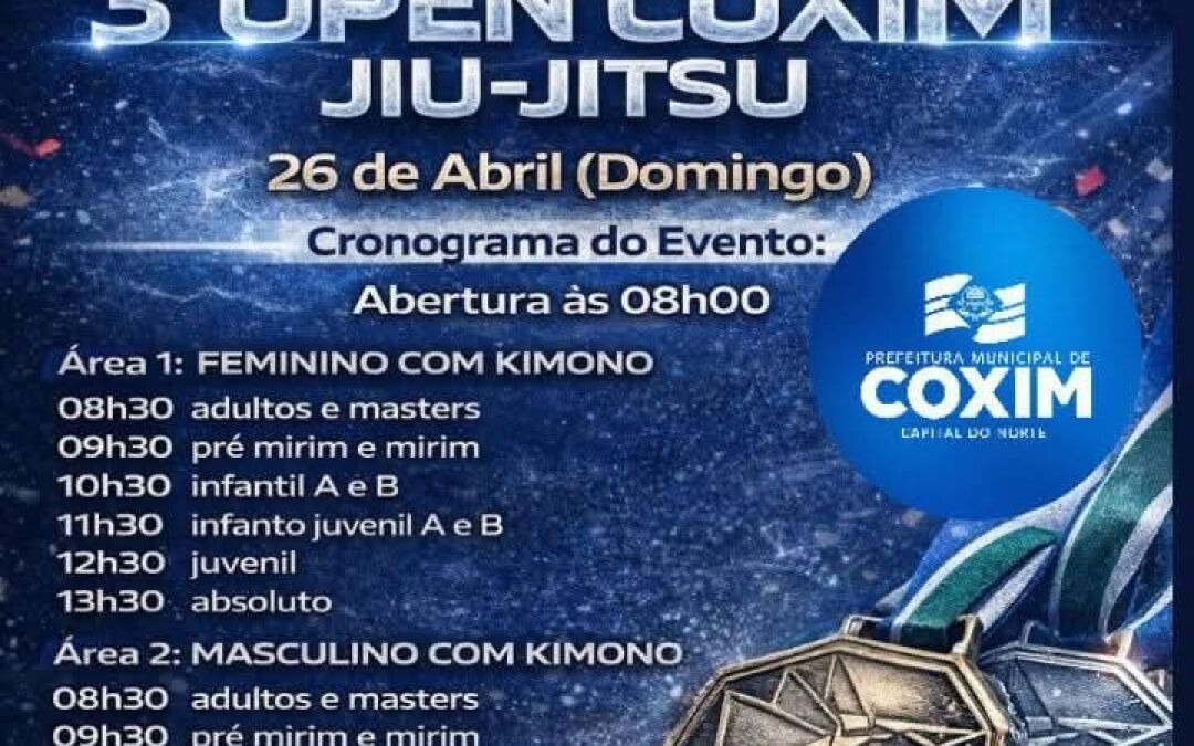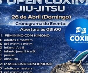 A cidade de Coxim será palco de um grande evento esportivo, o 3º Open Coxim de Jiu-Jitsu. A competição promete reunir atletas de diversas idades e categorias, movimentando o cenário esportivo local e regional.
