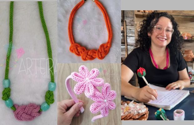 Com duas décadas de experiência no campo, Graziele traz seu vasto conhecimento em técnicas de produção de acessórios em tricotin, utilizando linhas de algodão para criar peças únicas e encantadoras.