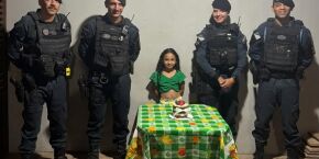 Presença da Força Tática emociona a pequena Alice Valentina na comemoração do aniversário ao lado dos policiais em Coxim