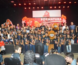 A solenidade aconteceu na Igreja Pedra Viva e reuniu cerca de 450 alunos do 5º ano das redes municipal e estadual de ensino.