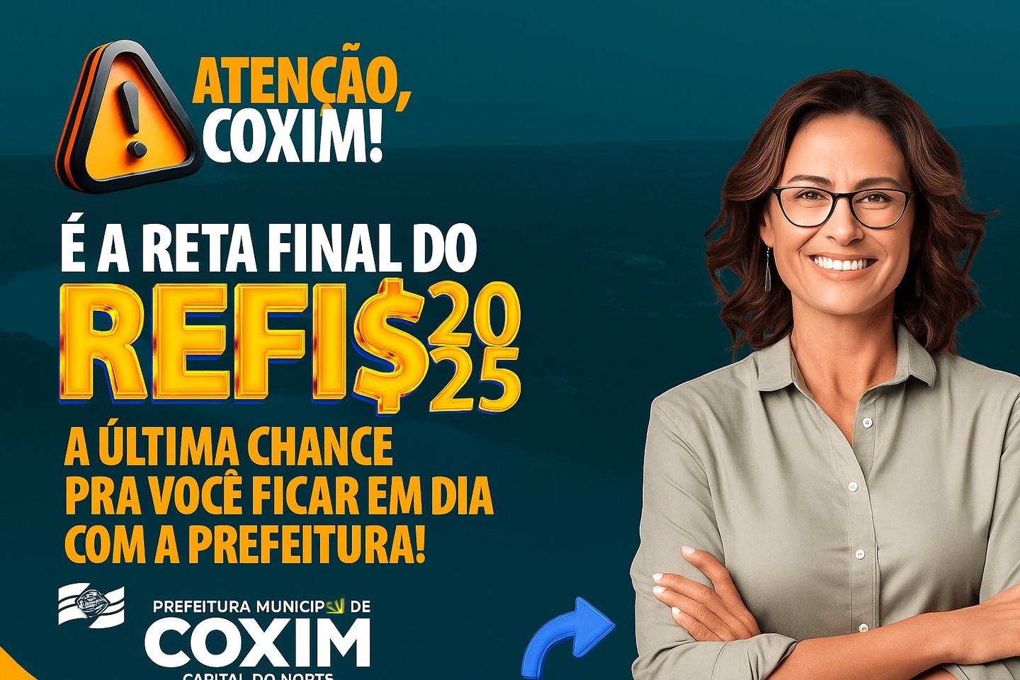 A Prefeitura de Coxim comunica à população que o prazo para adesão ao Programa de Recuperação Fiscal (REFIS) encerra na próxima semana, em 31 de outubro. O programa, regulamentado pela Lei n° 2.035, de 15 de julho de 2025, oferece condições únicas para a regularização de débitos de ISS, ISQN, IPTU e demais tributos municipais: até 100% de desconto sobre juros e multas e possibilidade de parcelamento em até 36 vezes, com condições especiais.