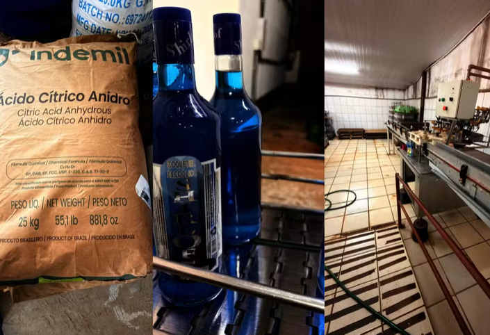 A fábrica não tinha responsável técnico, e a origem do álcool usado nas bebidas não foi comprovada. Foram apreendidas oito garrafas prontas para consumo, além de tampas, rótulos e recipientes cheios e vazios.