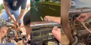 Capô levantado e teto cortado: adolescentes andam com carro aos pedaços em MS