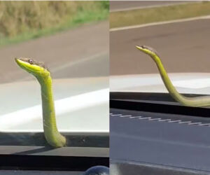 Uma dupla de socorristas do Serviço de Atendimento Móvel de Urgência (Samu) teve um encontro inesperado na tarde de terça-feira (21), em Campo Grande (MS). Uma cobra surgiu no capô da ambulância enquanto os profissionais retornavam de uma ocorrência no distrito de Anhanduí, a 60 km da capital.