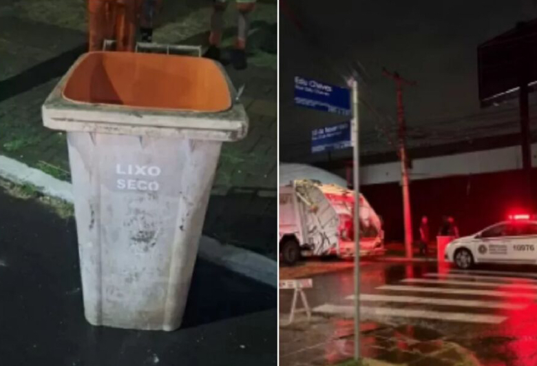 Os agentes também apuram se a lixeira foi deixada no local horas antes de ser encontrada, entre a tarde e a noite de segunda-feira.