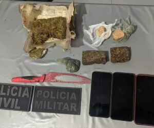 A Polícia Militar, junto com a Polícia Civil, foi até o endereço indicado e encontrou pasta-base de cocaína e maconha. No local, um adolescente de 17 anos admitiu ser o responsável por armazenar e distribuir os entorpecentes para o grupo. Os quatro adultos foram presos em flagrante e o adolescente apreendido.