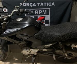 A moto, uma Yamaha/Factor de cor preta, havia sido furtada no início da noite no estacionamento de um supermercado, localizado na Avenida Virgínia Ferreira.