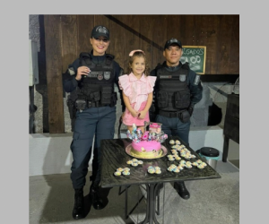 A presença da Polícia Militar trouxe ainda mais alegria ao evento. Não faltaram sorrisos, fotos com os policiais e momentos de interação com todas as crianças presentes, tornando a comemoração ainda mais inesquecível para Alice e seus convidados.